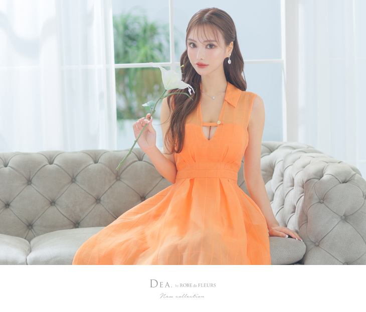 【お取り寄せ商品】 DEA. ディア バイ ローブドフルール バストベルトチェックオーガンジーノースリーブロングキャバドレス de3342-c