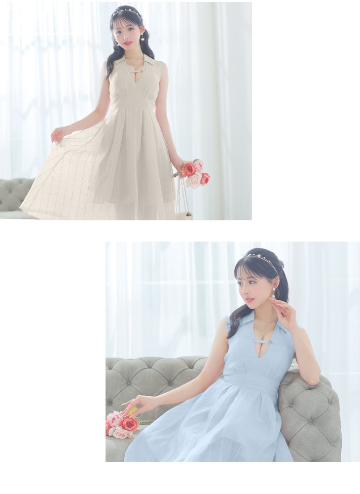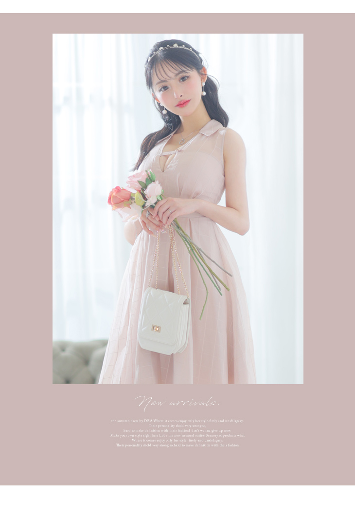 5. DEA. ディア バイ ローブドフルール バストベルトチェックオーガンジーノースリーブロングキャバドレス de3342-c