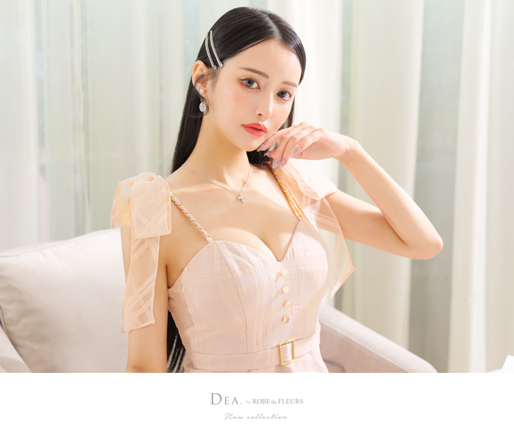 【お取り寄せ商品】 DEA. ディア バイ ローブドフルール 肩リボン×チェック柄オーガンジーフレアロングキャミキャバドレス de3346-c