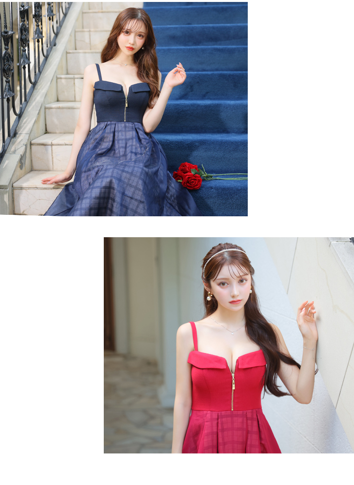 【お取り寄せ商品】 DEA. ディア バイ ローブドフルール ボリュームチェックフレアツイードロングキャバドレス de3355-c