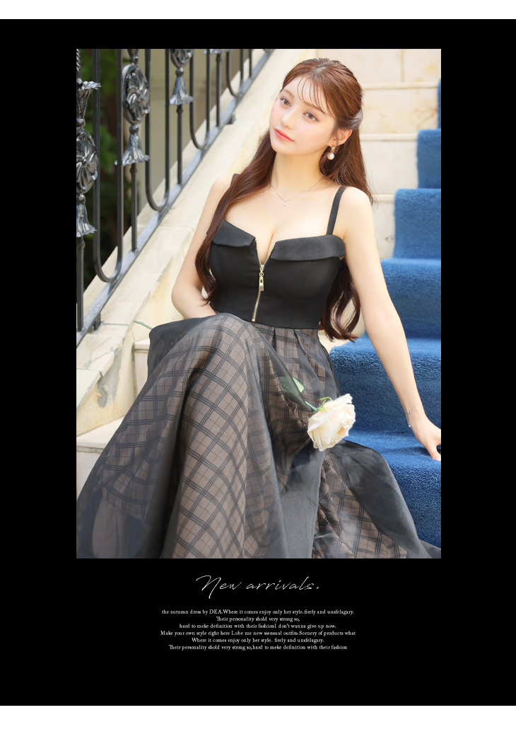 4. DEA. ディア バイ ローブドフルール ボリュームチェックフレアツイードロングキャバドレス de3355-c