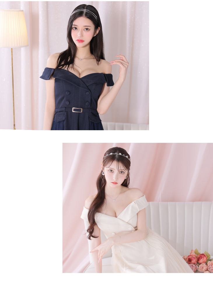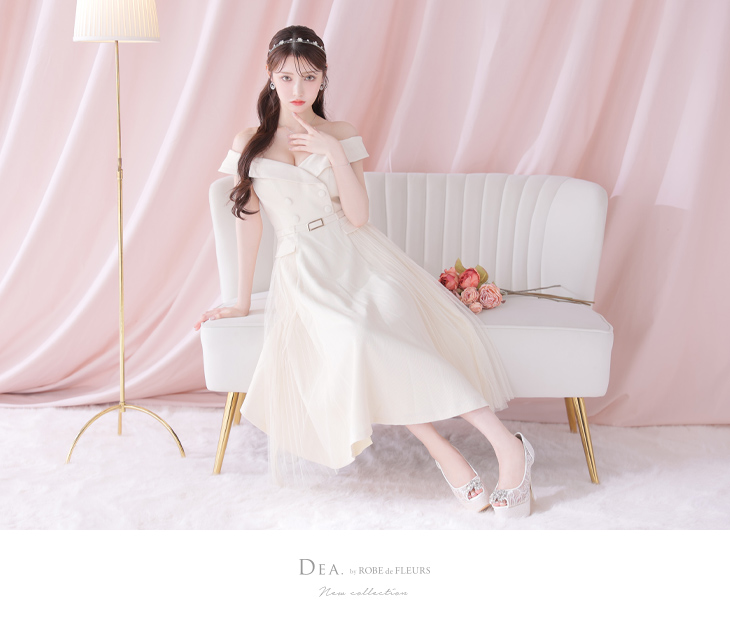 DEA. ディア バイ ローブドフルール ダブルボタンサイドチュールオフショルフレアキャバドレス de3417-c