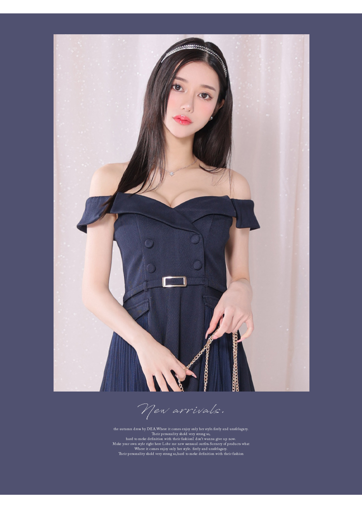4. DEA. ディア バイ ローブドフルール ダブルボタンサイドチュールオフショルフレアキャバドレス de3417-c