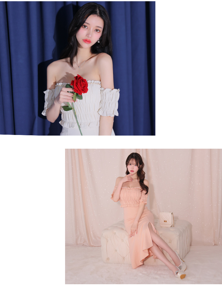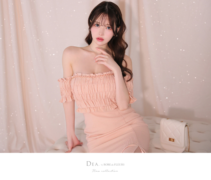 5. DEA. ディア バイ ローブドフルール トップギャザーオフショルロングキャバドレス de3419-c