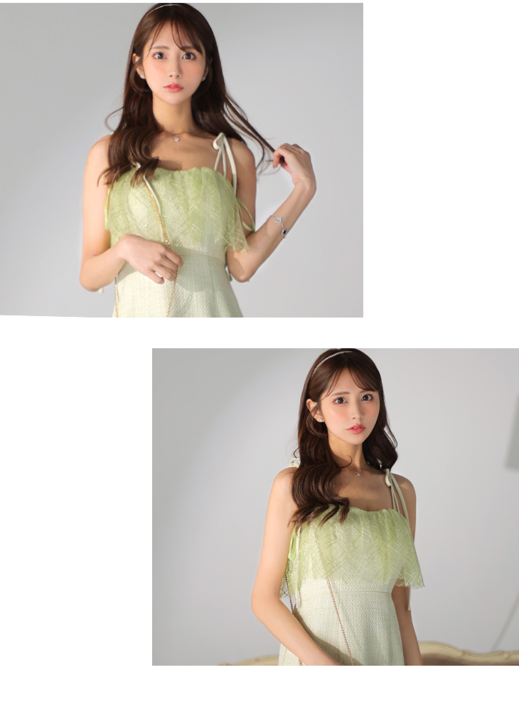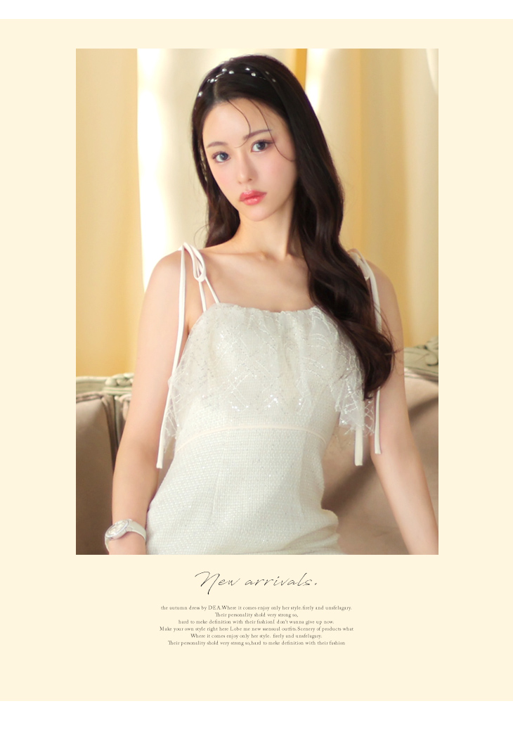 大人っぽい中にも肩紐リボンで可愛さも演出。
