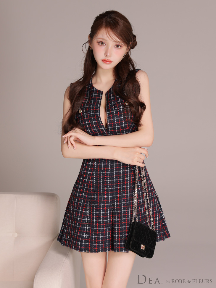 3. 【4月下旬頃入荷予定】DEA. ディア バイ ローブドフルール 【XSサイズあり】チェックノースリーブバストカットプリーツミニキャバドレス de4209-c