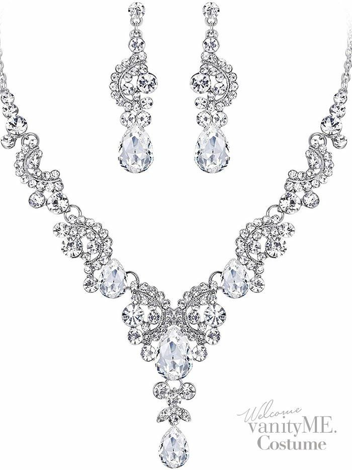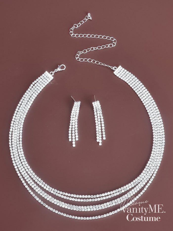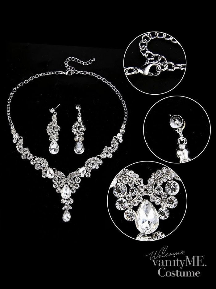 【即日発送】 大粒ビジュー×クロスモチーフデザイン ネックレス&ピアス シルバー ジュエリー vcsit-25029