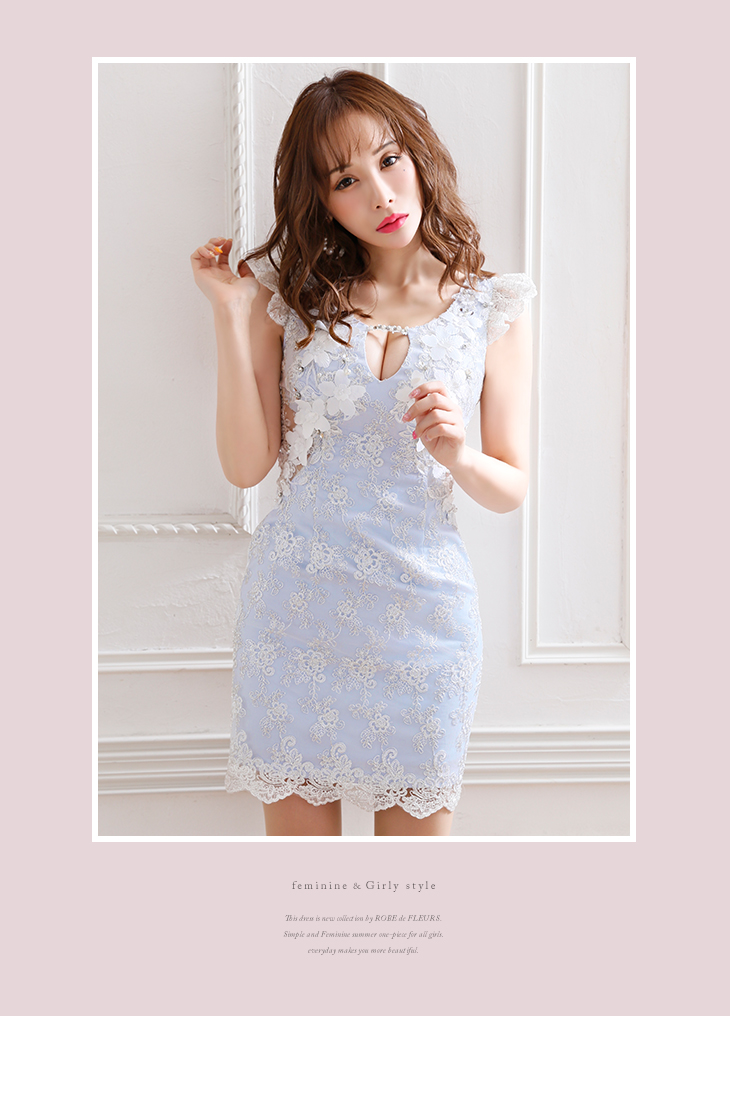3. ROBE de FLEURS 立体フラワーレース×サイドレース切替タイトミニドレス fm1852-1