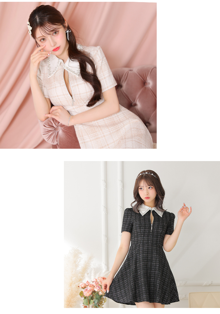 5. ROBE de FLEURS ローブドフルール 襟付きジップツイードフレアミニドレス fm2639-c