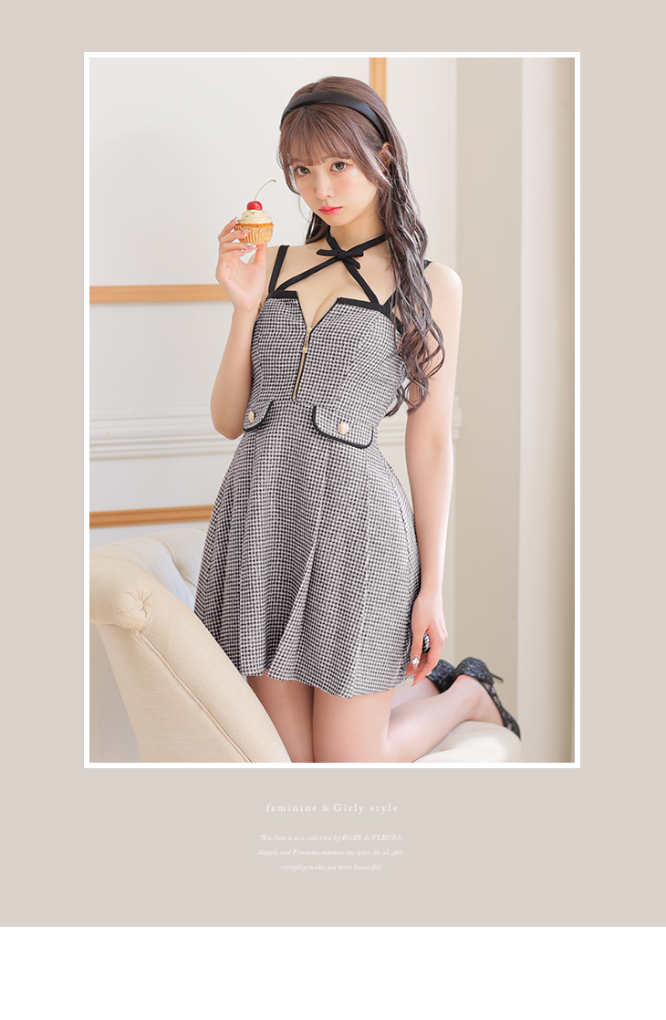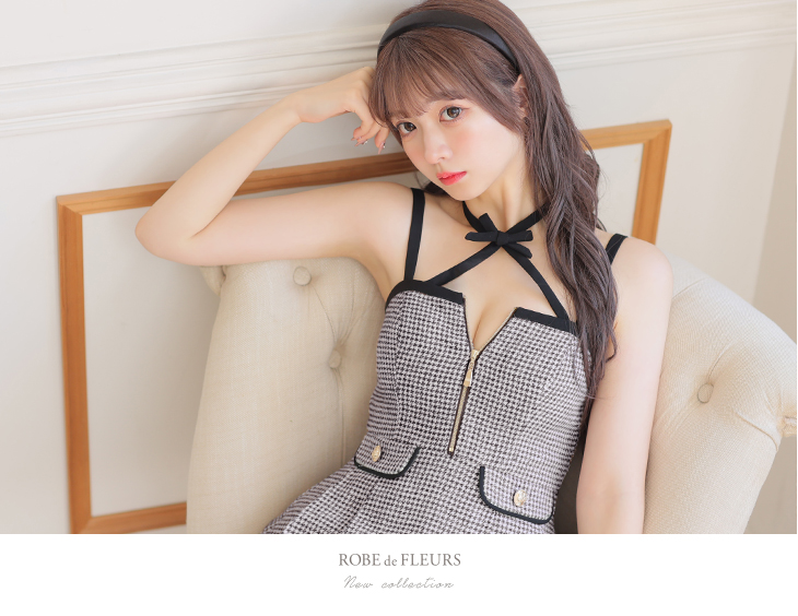 【7月下旬入荷予定】ROBE de FLEURS ローブドフルール リボンチョーカーツイードフレアミニドレス fm2656-c