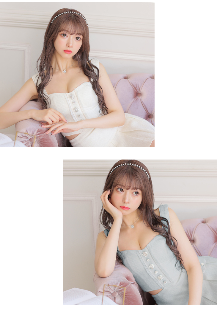 【9月下旬入荷予定】ROBE de FLEURS ローブドフルール ビジューボタンツイードセットアップミニドレス(fm2883-c)