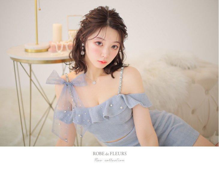 【お取り寄せ商品】 ROBE de FLEURS ローブドフルール パールフリル×ウエストカットミニドレス fm2886-c