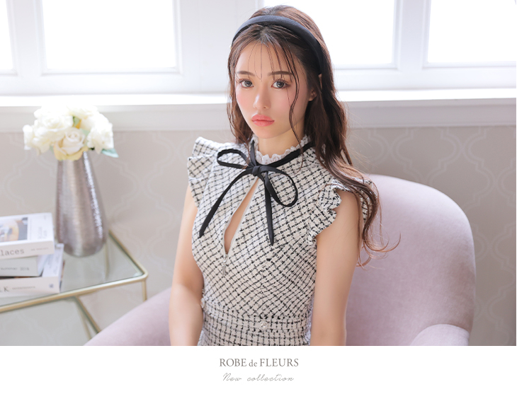 【お取り寄せ商品】 ROBE de FLEURS ローブドフルール チェックツイードバストリボンミニドレス fm2934-c