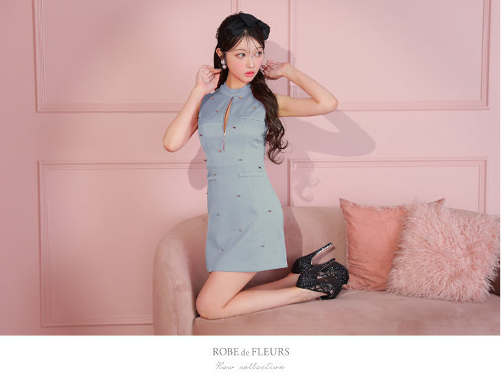 【即日発送】 ROBE de FLEURS ローブドフルール ハートボタンキュートネスミニドレス fm2979-7