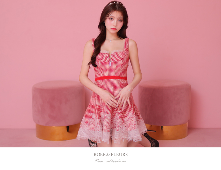【お取り寄せ商品】 ROBE de FLEURS ローブドフルール ギンガムチェックフレアミニドレス fm2990-c