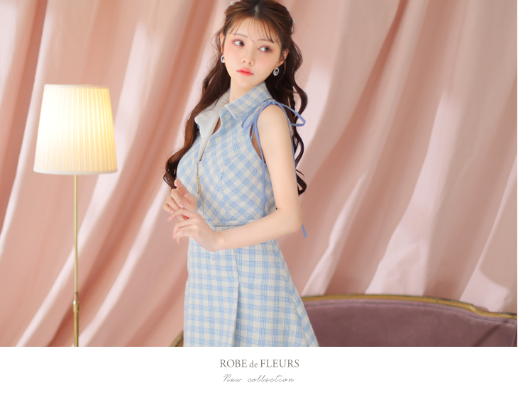 4. ROBE de FLEURS ローブドフルール 襟デザイン×プリーツフレアチェックドレス fm2998-c