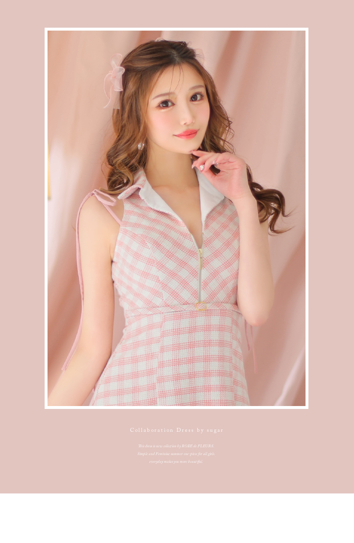 襟のデザインやスカートのプリーツ、肩部分の紐リボンなど、こだわりの甘さをぎゅっと詰め込みました。