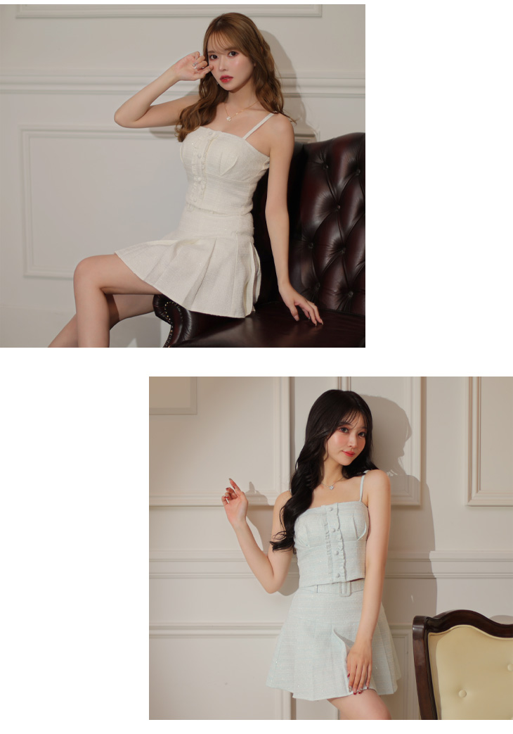 ボタン部分のフリルとプリーツスカートの組み合わせがキュートな一枚♡