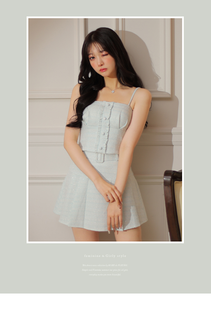 3. ROBE de FLEURS ローブドフルール ラメツイード×プリーツスカートセットアップドレス fm3215-c