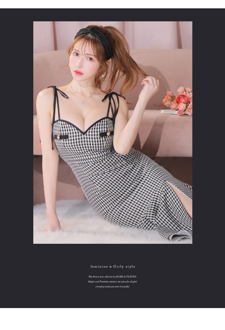 5. ROBE de FLEURS ローブドフルール ピンク ショルダーリボンギンガムチェックマーメイドキャバドレス fm3248-1