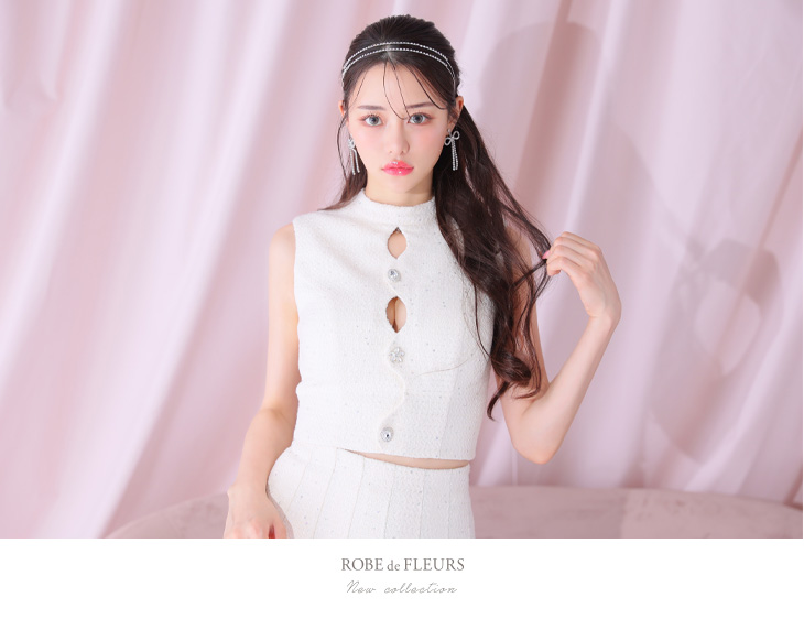 4. ROBE de FLEURS ローブドフルール ラメツイードビジューボタンノースリーブキャバドレス fm3260-c