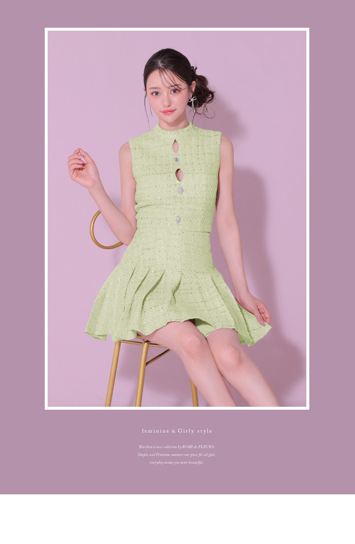 ビジューボタンが光るセットアップミニドレス♥