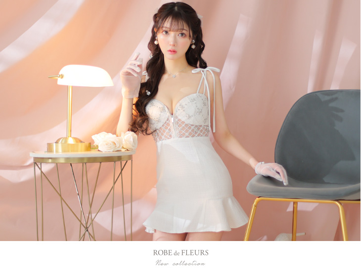 4. ROBE de FLEURS ローブドフルール スプリングレースツイードミニキャバドレス fm3411-c