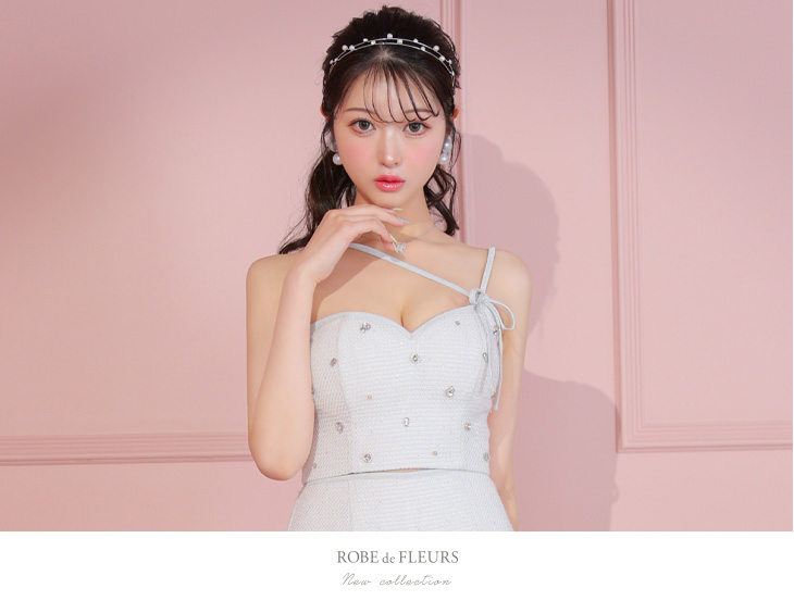 ROBE de FLEURS ローブドフルール サイドポイントリボンビジューセットアップミニキャバドレス fm3422-c