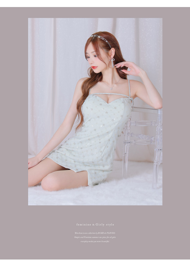 4. ROBE de FLEURS ローブドフルール ビジューリボンハートカットタイトミニキャバドレス【デコルテパーツ取り外し可能】 fm3426
