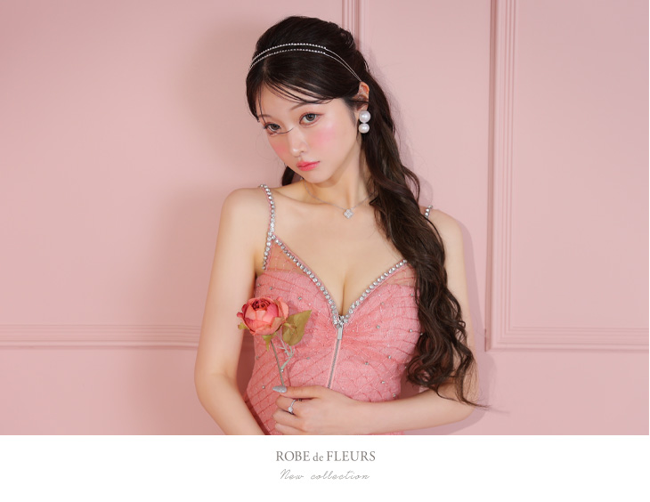 【即日発送】 ROBE de FLEURS ローブドフルール アイボリー ショルダービジューフロントジッパーフレアミニキャバドレス fm3514-1