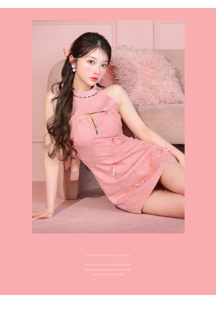 4. ROBE de FLEURS ローブドフルール バレエコアランダムスイートミニリボンキャバドレス fm3531-c