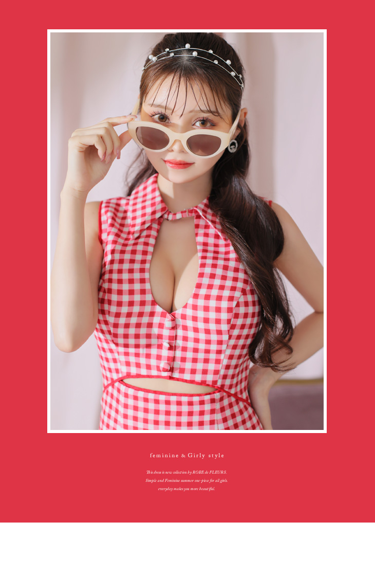 バストとウエスト部分のカットデザインで肌見せを。