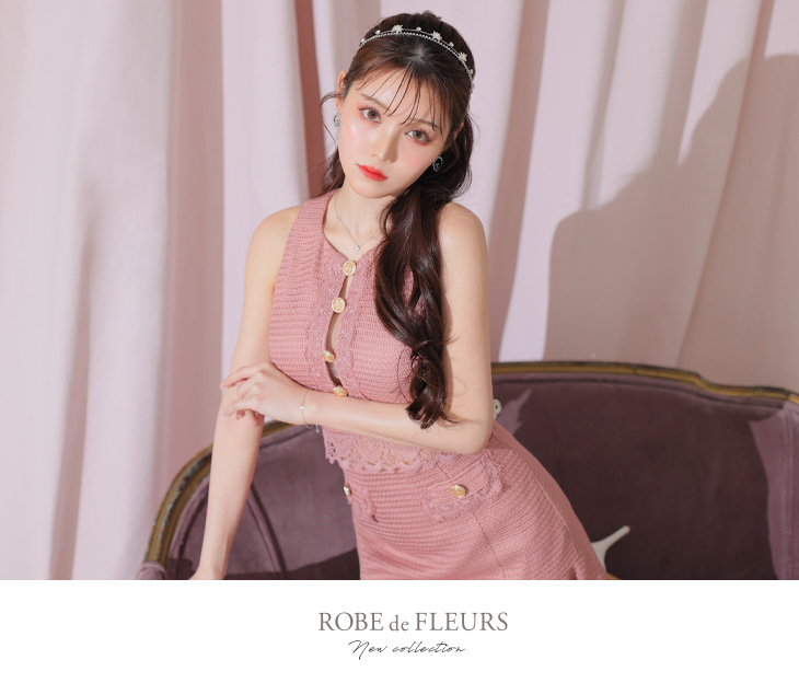 ROBE de FLEURS ローブドフルール フロントゴールドボタンオープンセットアップキャバドレス fm3711-c