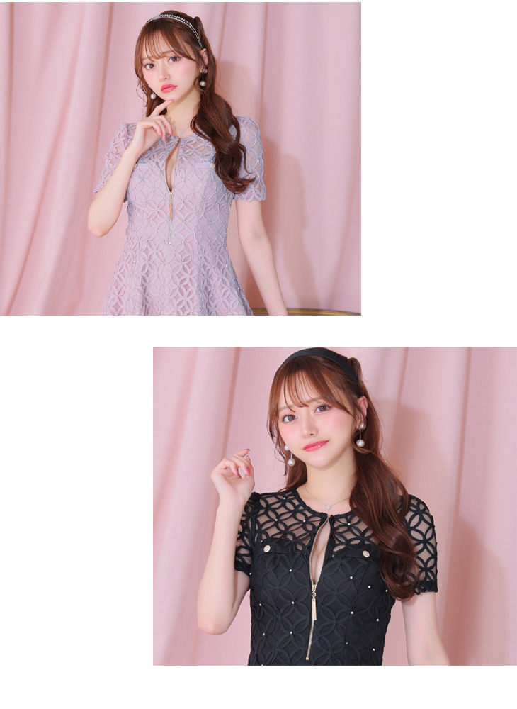 【お取り寄せ商品】 ROBE de FLEURS ローブドフルール シースルーレースビジューバストジップミニキャバドレス fm3727-c