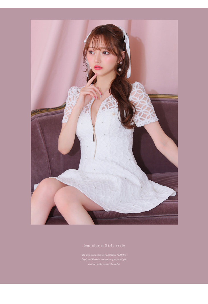 4. ROBE de FLEURS ローブドフルール シースルーレースビジューバストジップミニキャバドレス fm3727-c