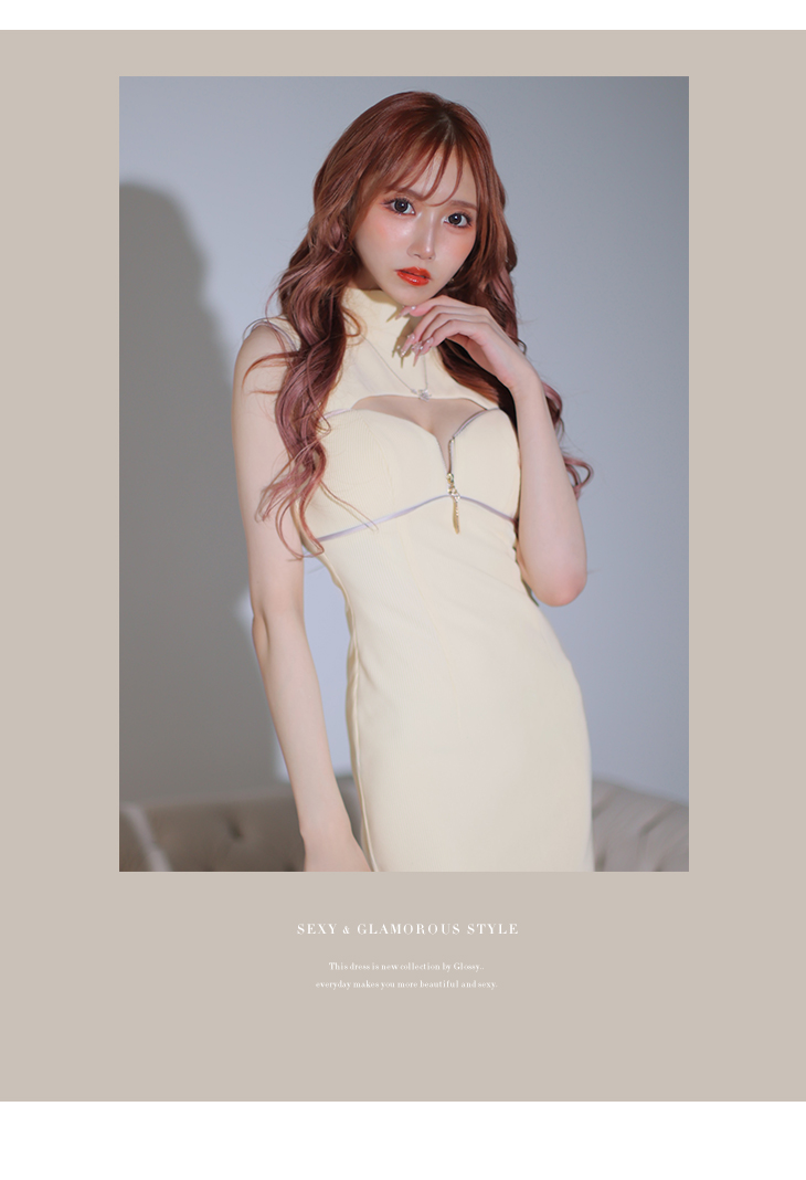 5. Glossy ローブドフルールグロッシー フロントジッパーxリブニットノースリーブタイトドレス gl2916-c