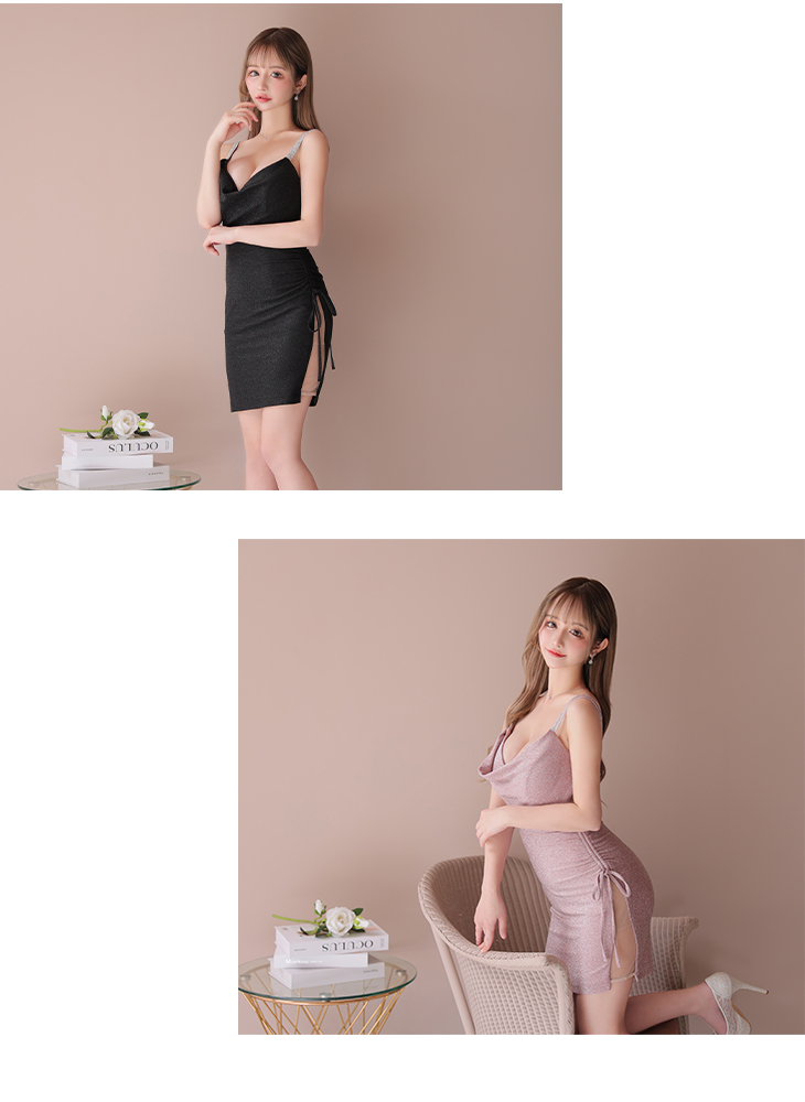 4. Glossy ローブドフルールグロッシー ラメニット×ビジューキャミミニドレス gl2929-c