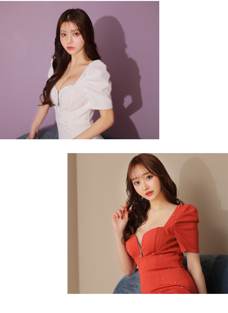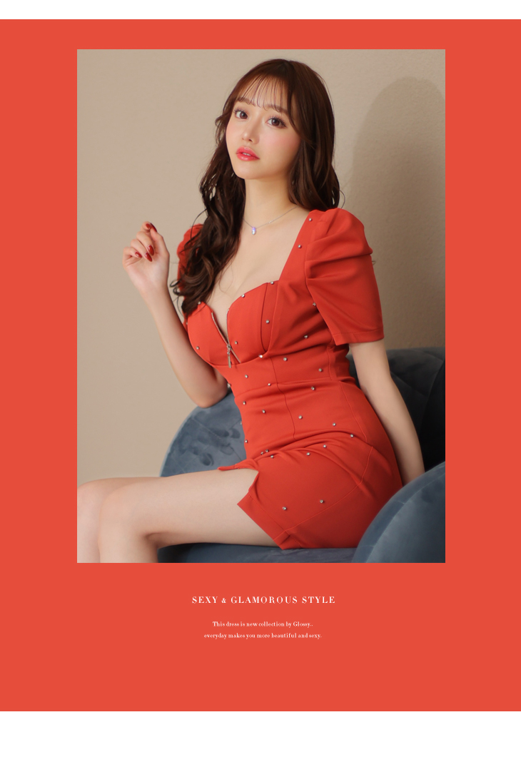 4. Glossy ローブドフルールグロッシー フロントジッパーxパフスリーブミニドレス gl3154-c