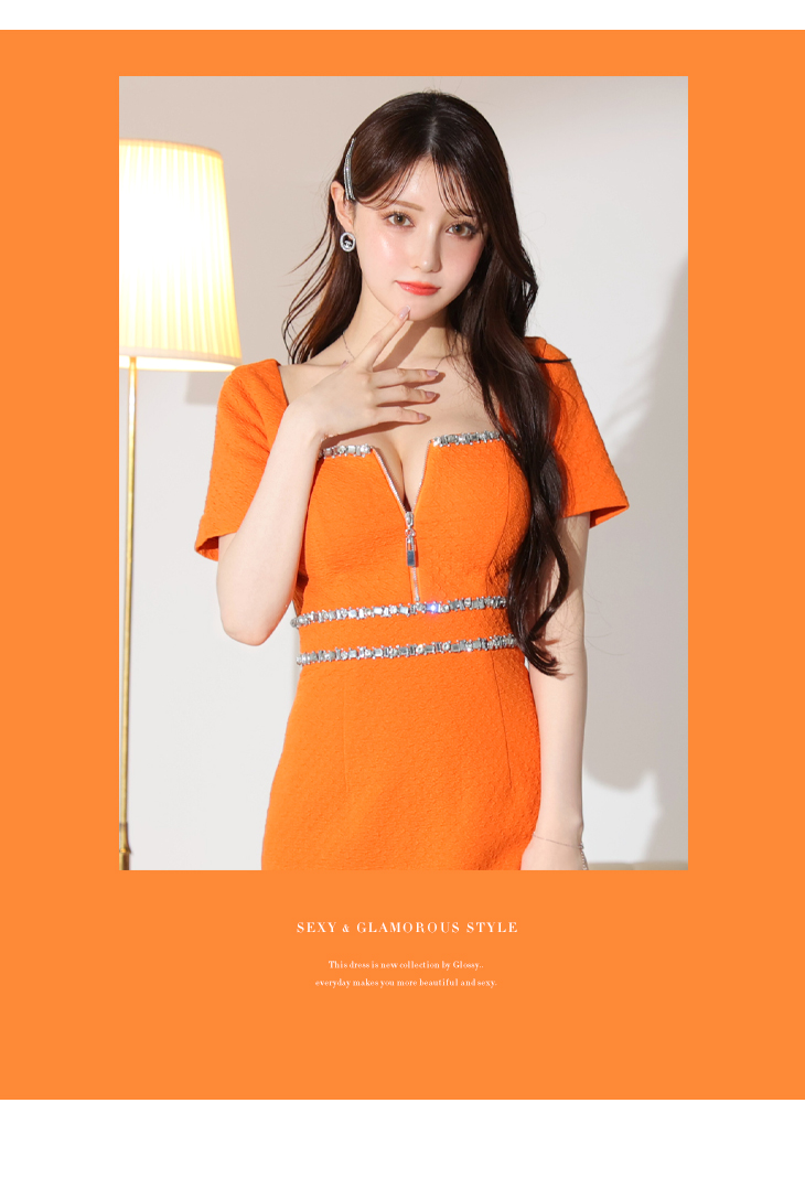 【お取り寄せ商品】 Glossy ローブドフルールグロッシー バストジッパー×ビジューワッフルタイトミニドレス gl3162-c