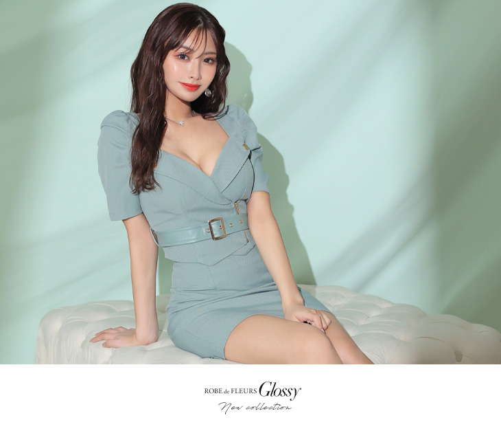 Glossy ローブドフルールグロッシー レザーベルトパフスリーブトラベルタイトミニキャバドレス gl3167-c