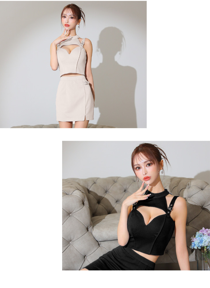 肩のデザインが特徴的なセットアップミニドレス。 シルバーのバックルでクールに演出♡