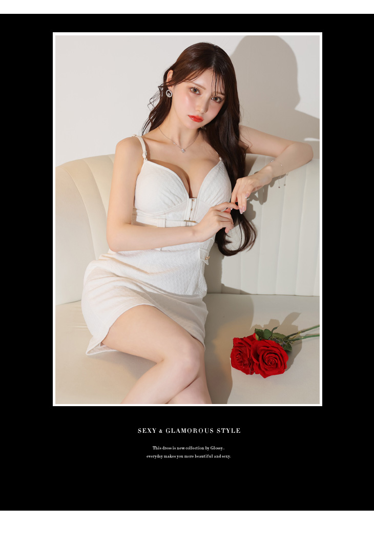 4. Glossy ローブドフルールグロッシー ベルトデザインハートカットスマートキャミキャバドレス gl3177-c