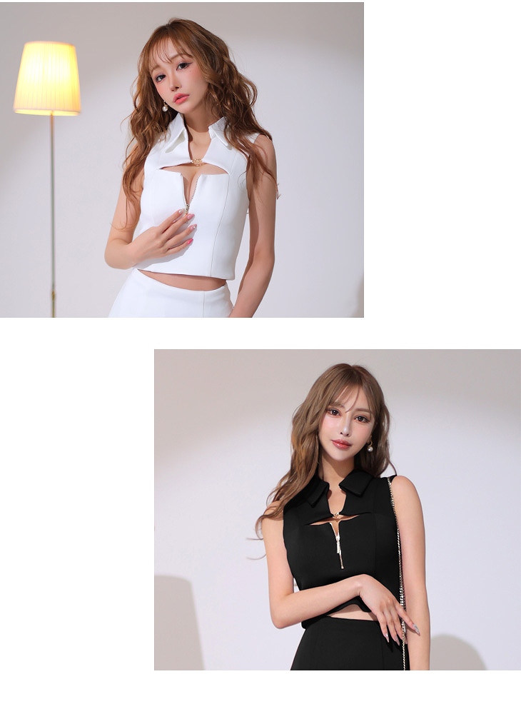 4. Glossy ローブドフルールグロッシー スタイリッシュカラーノースリーブショートセットアップドレス gl3223-1