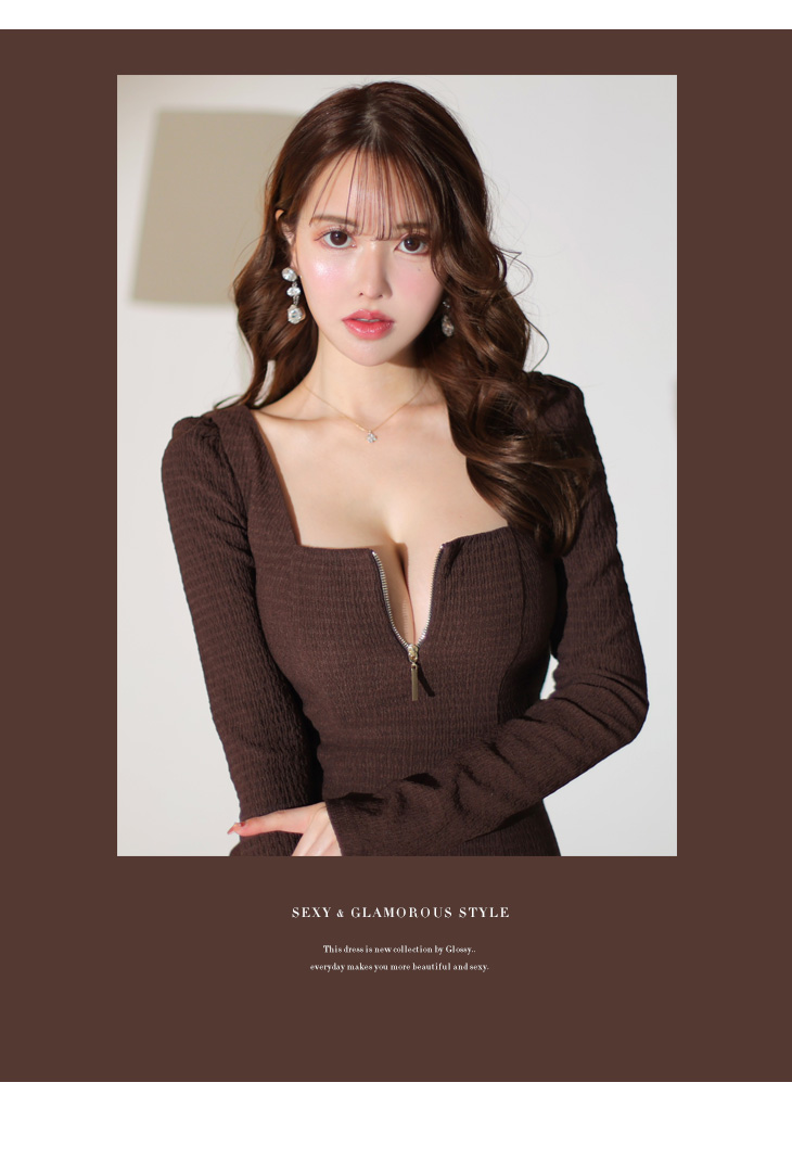 Glossy ローブドフルールグロッシー ラグジュアリーレッド ロングスリーブタイトミニキャバドレス gl3239-4