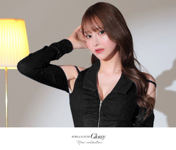 5. Glossy ローブドフルールグロッシー フロントジッパーオフショルミニキャバドレス gl3244-c