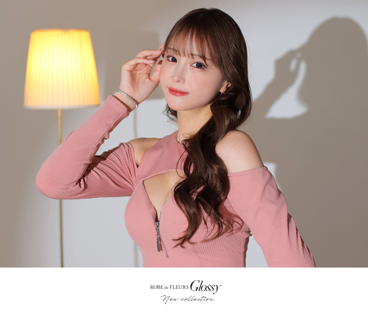 4. Glossy ローブドフルールグロッシー 裾リボン×バストカットオフショルニットキャバドレス gl3525-c
