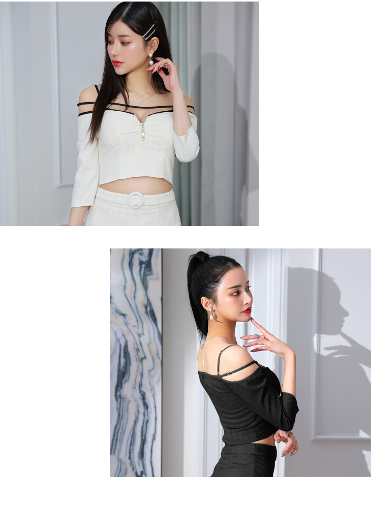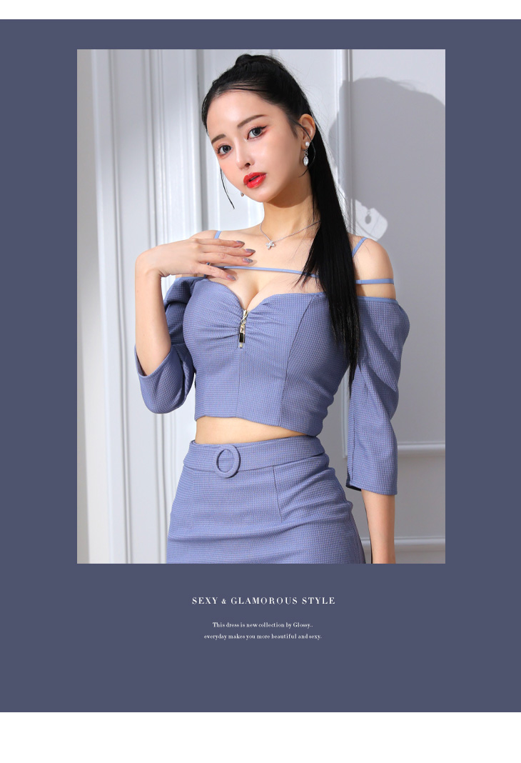 5. Glossy ローブドフルールグロッシー アイボリー Zipperxオフショルセットアップキャバドレス gl3527-1