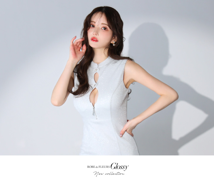 4. Glossy ローブドフルールグロッシー フロントジップ×バストボタンリブニットタイトキャバドレス gl3540-c