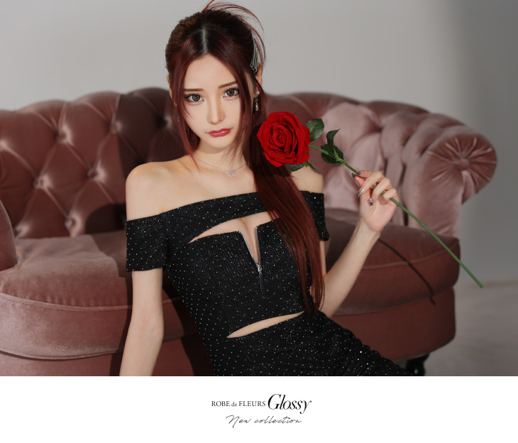 5. Glossy ローブドフルール グロッシー バスト&ウエストカットスタッズオフショルミニキャバドレス gl3710-c
