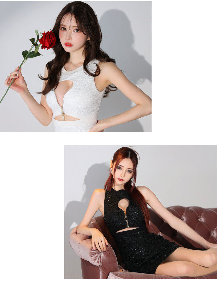 4. Glossy ローブドフルールグロッシー ブラック ダブルジップスパンコールツイードタイトミニキャバドレス gl3713-3